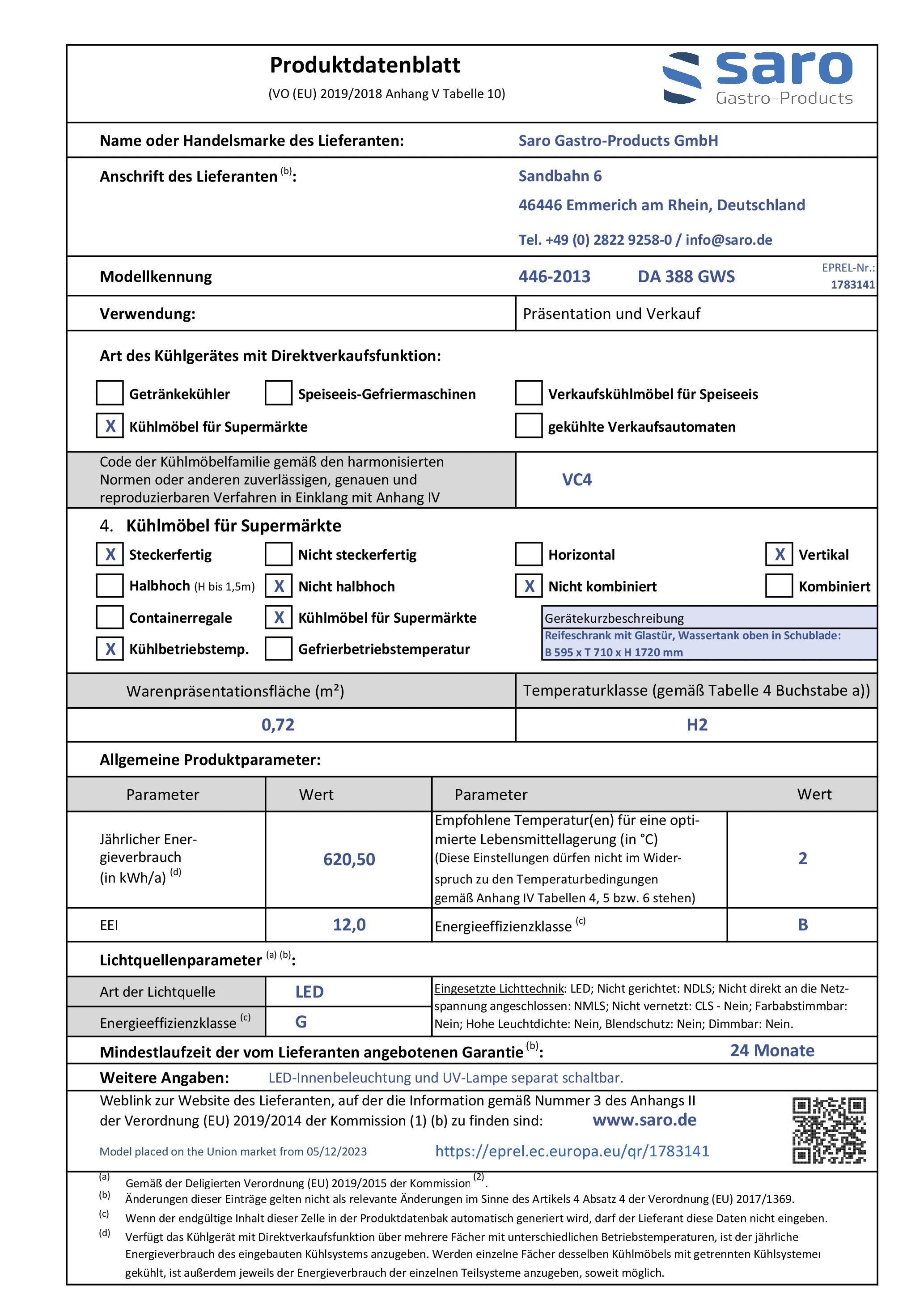 Hersteller: Saro Gastro-Products GmbH - Sandbahn 6 - 46446 Emmerich am Rhein - DEUTSCHLAND / GERMANY - info@saro.de - www.saro.de